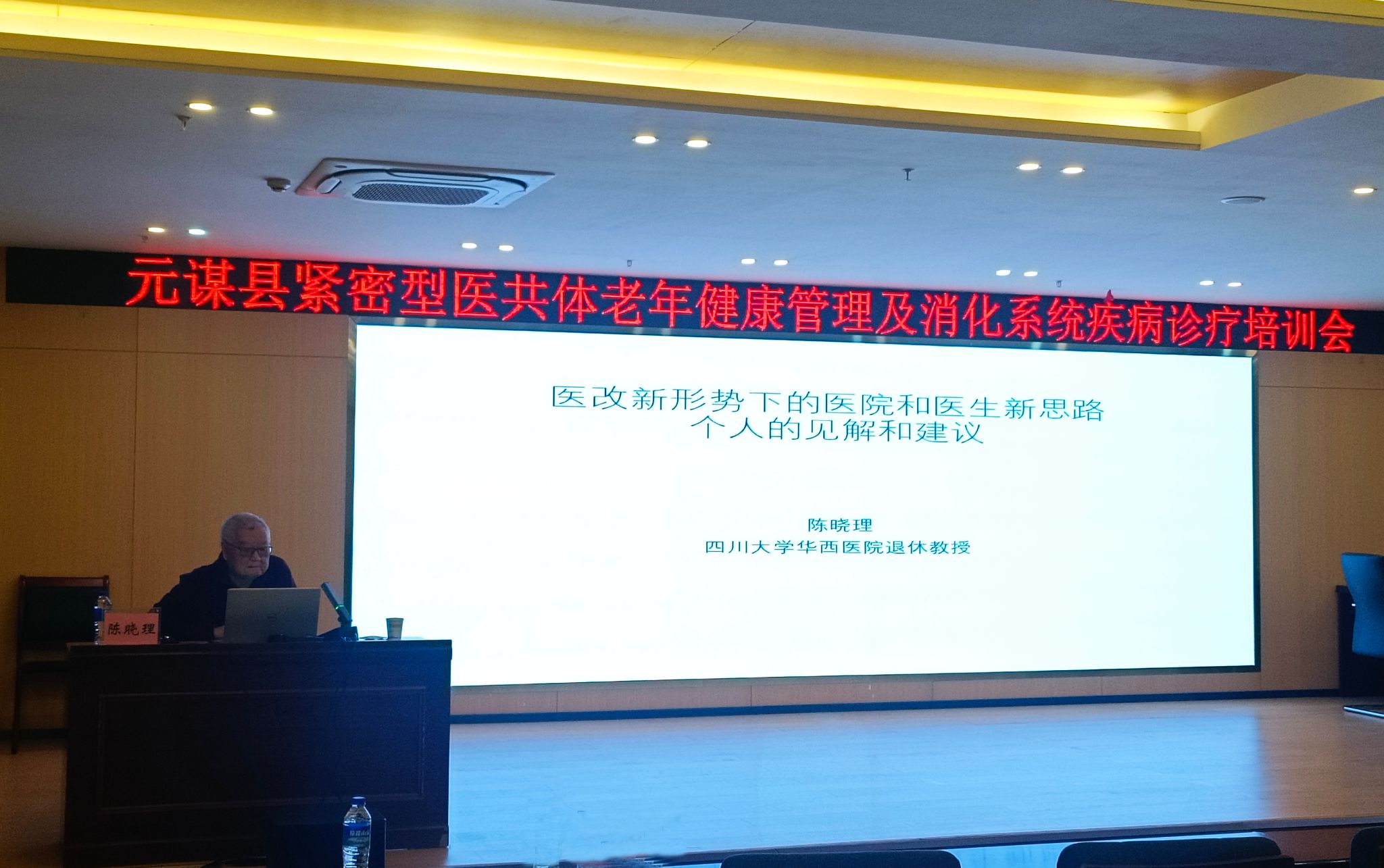 本次讲座邀请了四川省华西医院肝胆胰外科退休的陈晓理主任医师、原四川省绵阳市中心医院消化科主任兼内镜中心主任冯凯祥主任医师授课。陈晓理主任医师结合数十年临床及管理经验,围绕《医改新形势下的医院和医生新思路个人的见解和建议》《老年健康讲座第五讲 肠道,健康之本》两大主题,解读医改新政内涵,分享医院发展与医师成长思路,同时用通俗语言普及肠道健康常识,贴合老年群体需求。