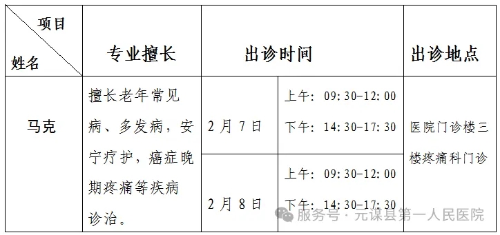 为满足广大人民群众就诊需求,减轻医疗费用负担,让广大人民群众在家门口就能享受到省内专家的诊疗服务和健康指导,元谋县第一人民医院邀请到了省内“银龄医师”知名专家到我院坐诊,为广大患者提供优质、高效、便捷的诊疗服务,现将出诊的具体事项通知如下: