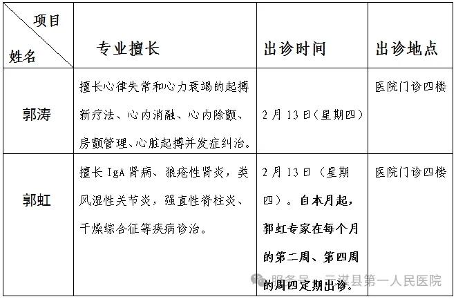 2025年2月13日(星期四)08:00-11:30,14:30-17:30。自本月起,“银龄医师”郭虹将在固定时间出诊(国家法定节假日除外),出诊时间及出诊地点详见“银龄医师”专家出诊信息表。