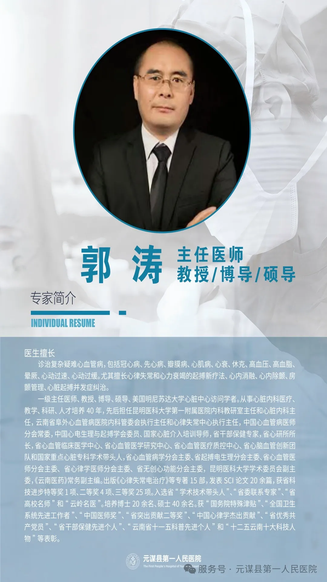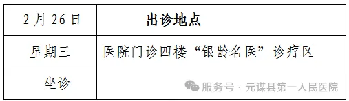 为满足广大人民群众就诊需求,减轻医疗费用负担,让广大人民群众在家门口就能享受到省内外专家的诊疗服务和健康指导,元谋县第一人民医院邀请到了省内外“银龄医师”知名专家定期到我院坐诊,为广大患者提供优质、高效、便捷的诊疗服务,现将出诊的具体事项通知如下: