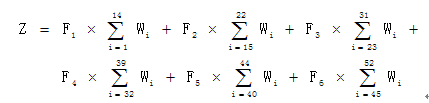 (二)对个体指数进行加权,计算6个分类指数。计算公式为: