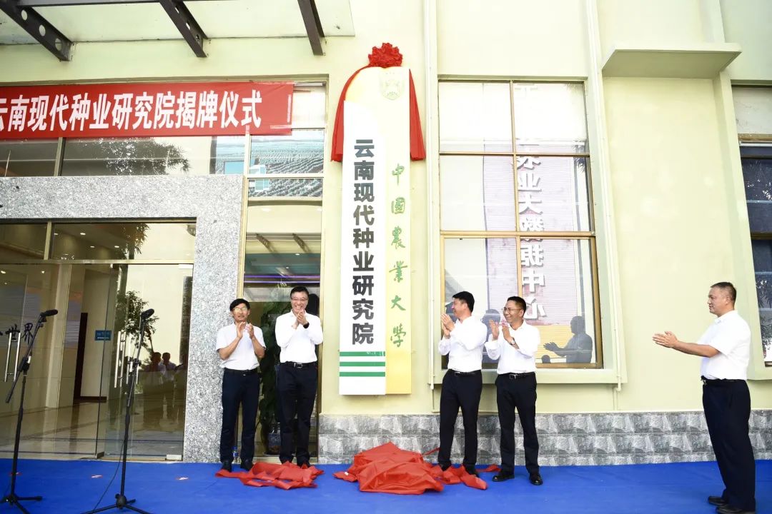 中国农业大学校长孙其信,州委书记刘勇,州委副书记、州长张文旺,省科技厅副厅长宋光兴为中国农业大学云南现代种业研究院揭牌。