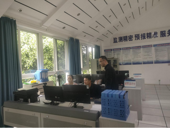 在县气象局,郑志学实地查看了智能预报预警服务平台、卫星云图等,详细了解近期旱情发展趋势、重要天气过程情况。县气象局局长进行工作汇报。