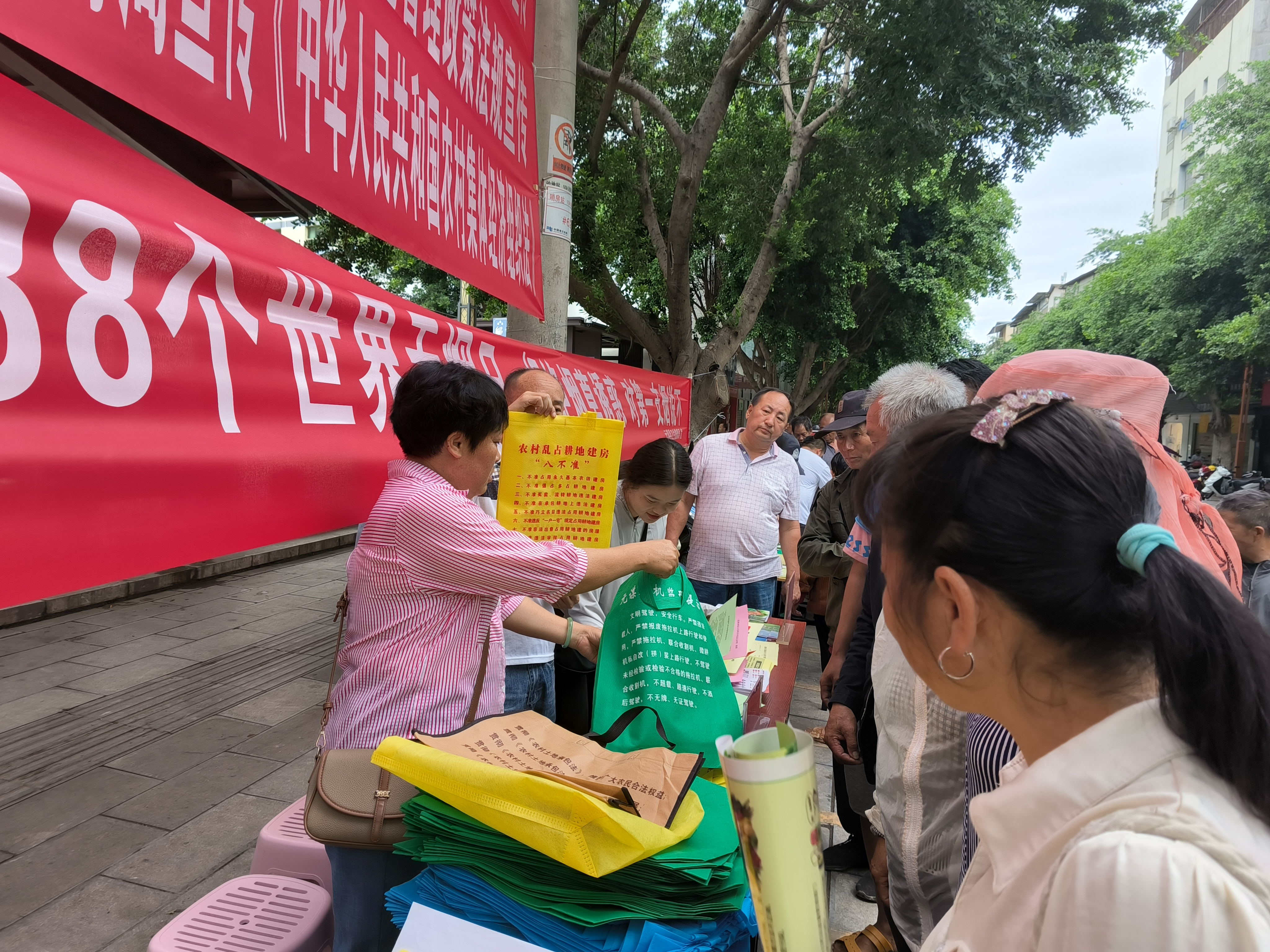 活动现场,县农业农村局工作人员结合自身职能特点,针对性地开展环境保护知识和涉农法律法规宣传,通过设立咨询台、悬挂横幅、发放宣传资料等形式,向广大群众宣传习近平生态文明思想,普及《楚雄彝族自治州乡村清洁条例》《中华人民共和国农村土地承包经营权证管理办法》等法律法规知识和申请宅基地建房须知、拖拉机的安全操作规程、农业领域有限空间安全知识、农村防火“三防六忌”、《元谋县人民政府关于依法打击炸鱼、毒鱼、电鱼等非法捕捞行为的通告》、非洲猪瘟防控、畜禽粪污收集池(沼气池)安全生产、草地贪夜蛾生物学监测与防控技术、金沙江流域(元谋段)农作物施肥建议、红火蚁预防与控制等知识,热情解答群众咨询。