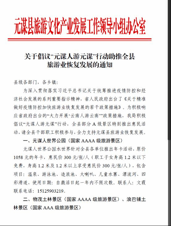 为积极响应省政府出台的大力开展“云南人游云南”活动,元谋县旅游文化产业发展工作领导小组办公室于2022年3月29日印发了《关于倡议“元谋人游元谋”行动助推全县旅游业恢复发展的通知》,并通过电视台、网络平台等多方宣传,动员县内各行政事业单位及企业和个人,积极参与到“元谋人游元谋”中来,以实际行动帮助企业纾困减负、渡过难关。增强企业的自主经营能力,积蓄发展力量。目前,该条政策出台近2个月,惠企成效持续显现,不仅“解渴”,更温暖人心。