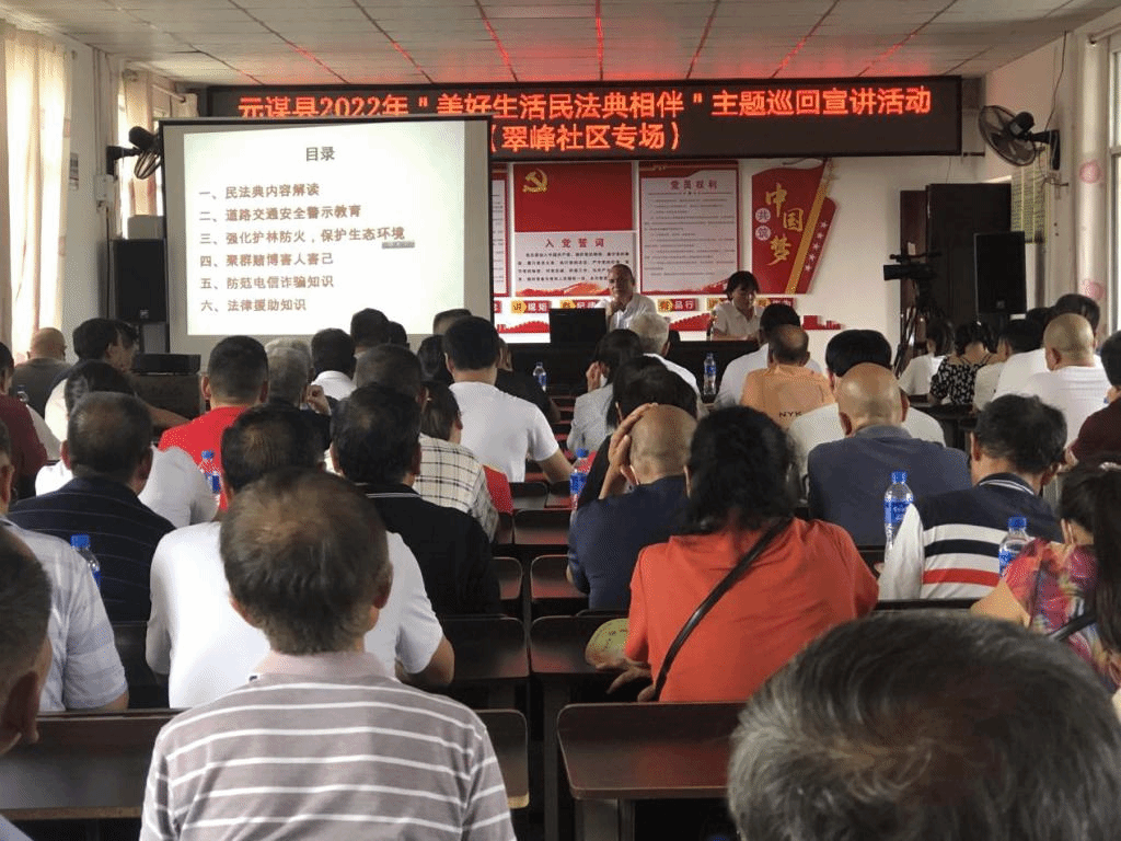 八、开展一次送法进社区活动。结合机关党员“双报到双服务双报告”活动,以开展“美好生活·民法典相伴”活动为抓手,司法局党支部深入翠峰社区开展“送法进社区”系列活动,通过设置义务法律咨询台、发放普法宣传资料、面对面与广大社区党员群众宣讲《中华人民共和国民法典》、现场解答问题等方式,有效增强了居民的法律意识,进一步提高了居民的守法维权意识,营造社区居民尊法、学法、守法、用法的良好氛围。