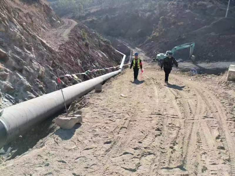 项目于2023年9月5日开工建设,截至2024年2月底,已完成23.4km管线的实物指标调查及征地工作,施工单位完成进场道路修建9.4km,输水主管道管槽开挖15km,螺旋钢管进场13.4km,焊接安装12.5km,浇筑混凝土镇墩、支墩:1920m³,渠系建筑物改造8座,泵站更新改造4座,探伤检测5320m。