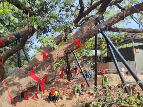 采取有效复壮措施。严格遵循《古树名木复壮技术规程》,采取断枝清理、树洞填充、杀菌防虫、打磨抛光、干燥碳化、建立支架、修建树池、设立防护栏等,使“古树换新装”。