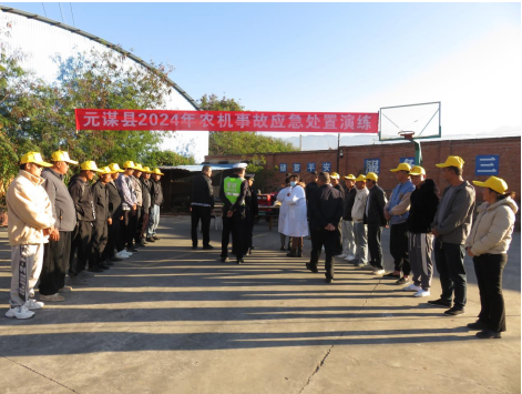 12月3日9时10分,随着指挥长一声号令,元谋县2024年农机事故应急处置演练拉开了序幕。演练模拟元谋县三友农机公司培训驾校在组织学员开展拖拉机旋耕作业训练过程中,学员李某某在检查并调节旋耕机时,因操作不当被旋耕机刀片压伤划伤的农机事故应急处置。