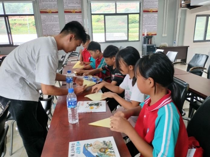 趣味课程启思维,多元体验探真知。除基础文化课程外,公益小课堂精心设计手工制作、绘画、阅读、体育等多元化特色课程,助力儿童综合素质提升。在波亨村委会,志愿者耐心指导孩子们进行手工创作:“大家看仔细,先把彩纸对折整齐,再用剪刀沿着虚线慢慢剪开……”生动的折纸课堂让孩子们在动手实践中感受创造乐趣。课堂还设置自由活动时段,提供阅读、手工、羽毛球、乒乓球、老鹰抓小鸡等多种选择,充分尊重个性需求,让每个孩子都能找到兴趣所在,在运动中释放活力、在游戏中激发创造力。