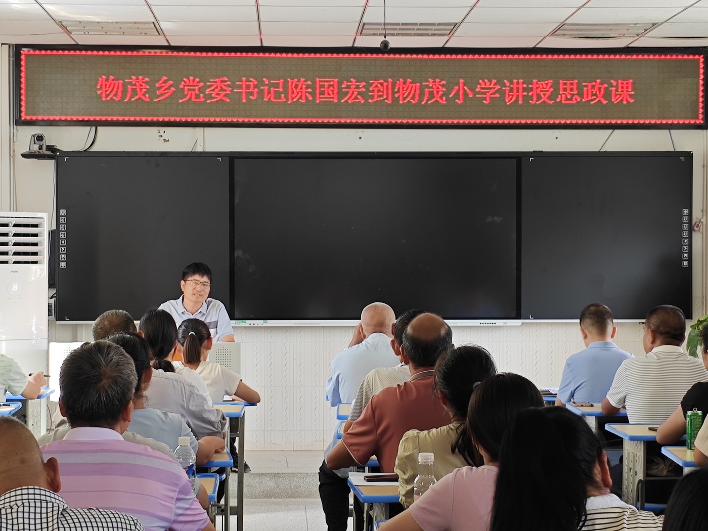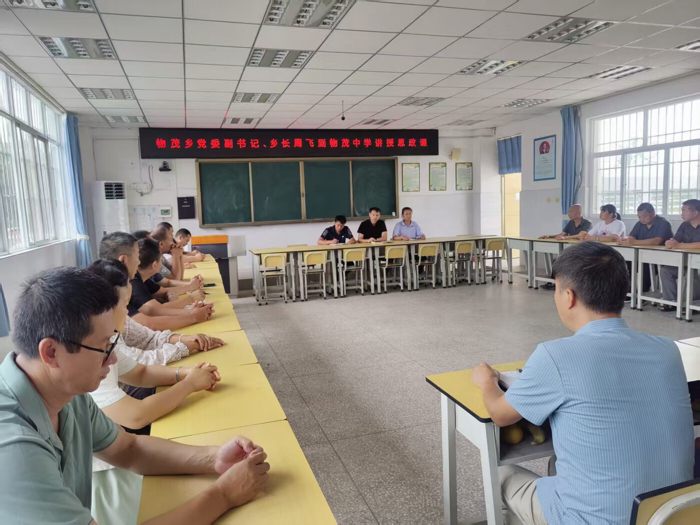 物茂乡党委书记和党委副书记、乡长分别到物茂辖区学校,为全校教师带来一堂意义深远的思政课。围绕如何当好“好校长、好班主任、好教师”展开深入分享,结合教育领域的新趋势、新要求以及物茂乡教育实际情况,给出了诸多建设性意见。此外,乡党委书记对新学期的教育教学质量提出明确要求。同时也鼓励教师积极投身教育改革,勇于探索实践,为培养德智体美劳全面发展的社会主义建设者和接班人贡献力量。