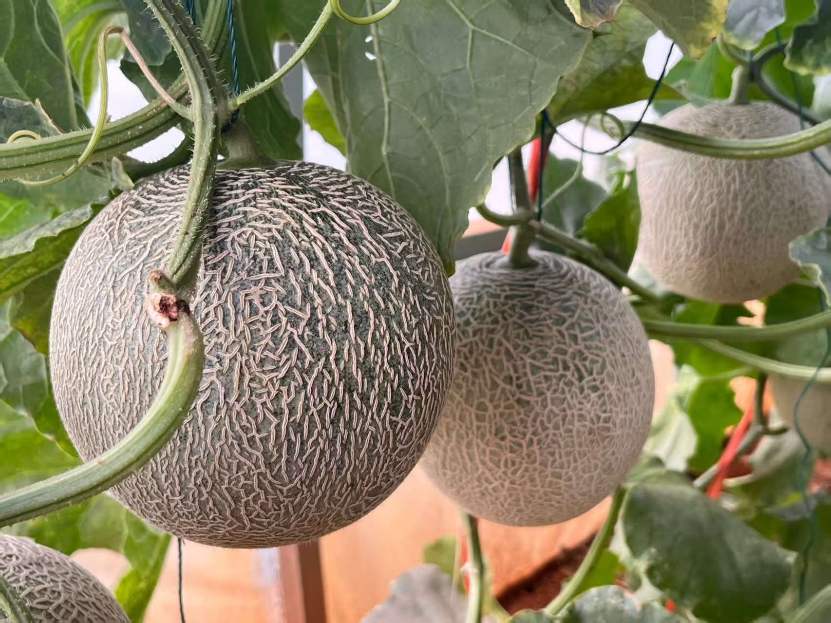 弯腰拨开藤蔓,网纹哈密瓜的绵密纹路藏不住诱人滋味,轻轻切开,清甜的汁水即刻流下,咬一口,甜到舌尖,润到心底。