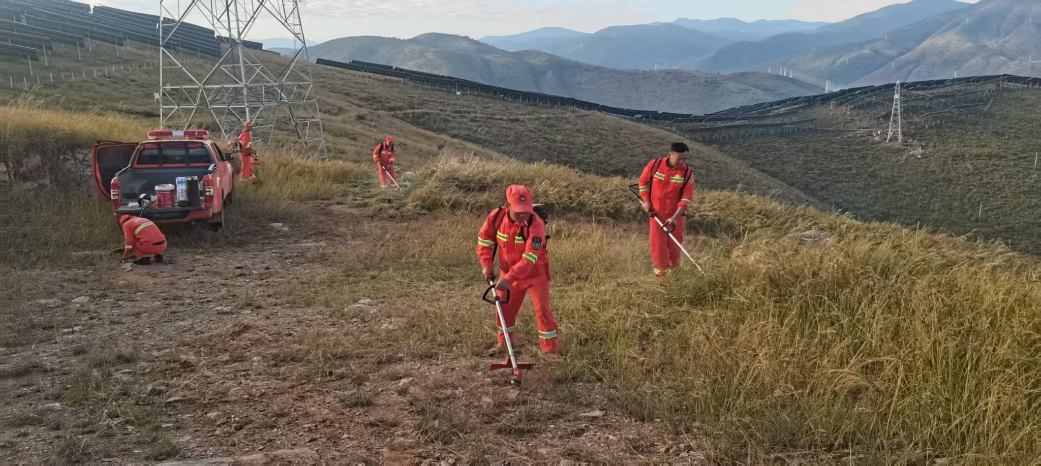 聚焦隐患整治,夯实防控基础。采取“机械+人工”“分片包干+分批次推进”模式开展专项整治。针对3处光伏项目区,按规范清理2.8公里防火隔离带,同步清除周边易燃物1000余亩;同时对7条主次道路两侧及山林周围杂草集中清理32公里,有效阻断火源扩散路径,累计出动人员300余人次、机械40余台次。