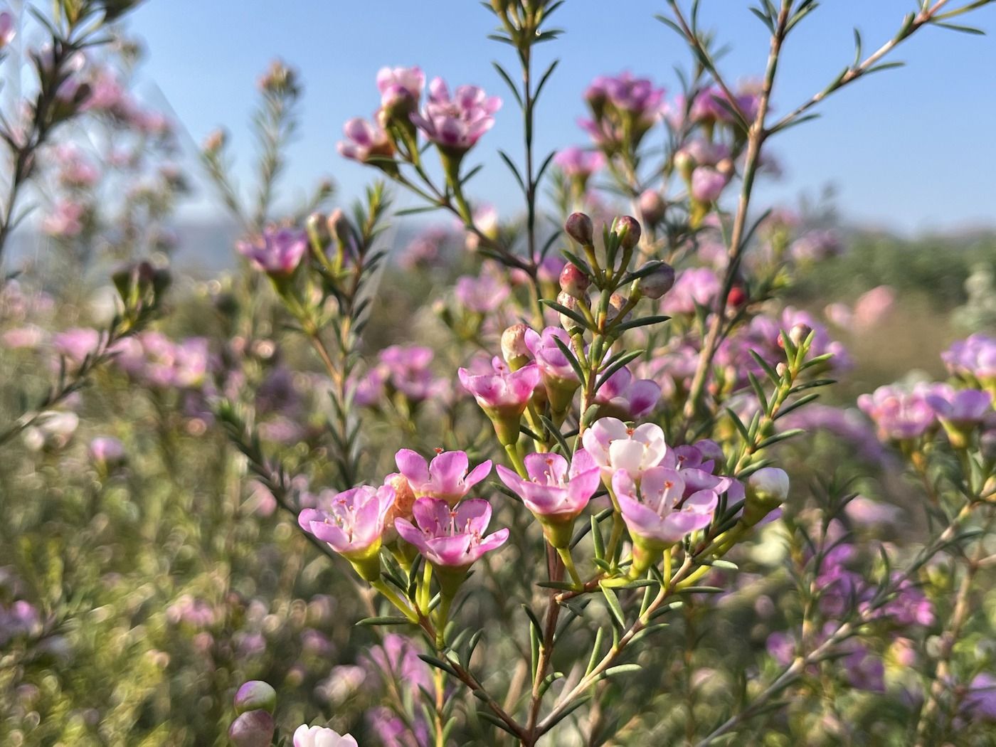 在苴林、领庄的田野里,蜡梅、勿忘我、满天星开得正艳,小巧的花朵迎风摇曳,在阳光下开得耀眼,微风轻拂,带着淡淡的花香飘向远方,为这宁静的田野增加了几分生机与活力,更增添了一份烂漫。