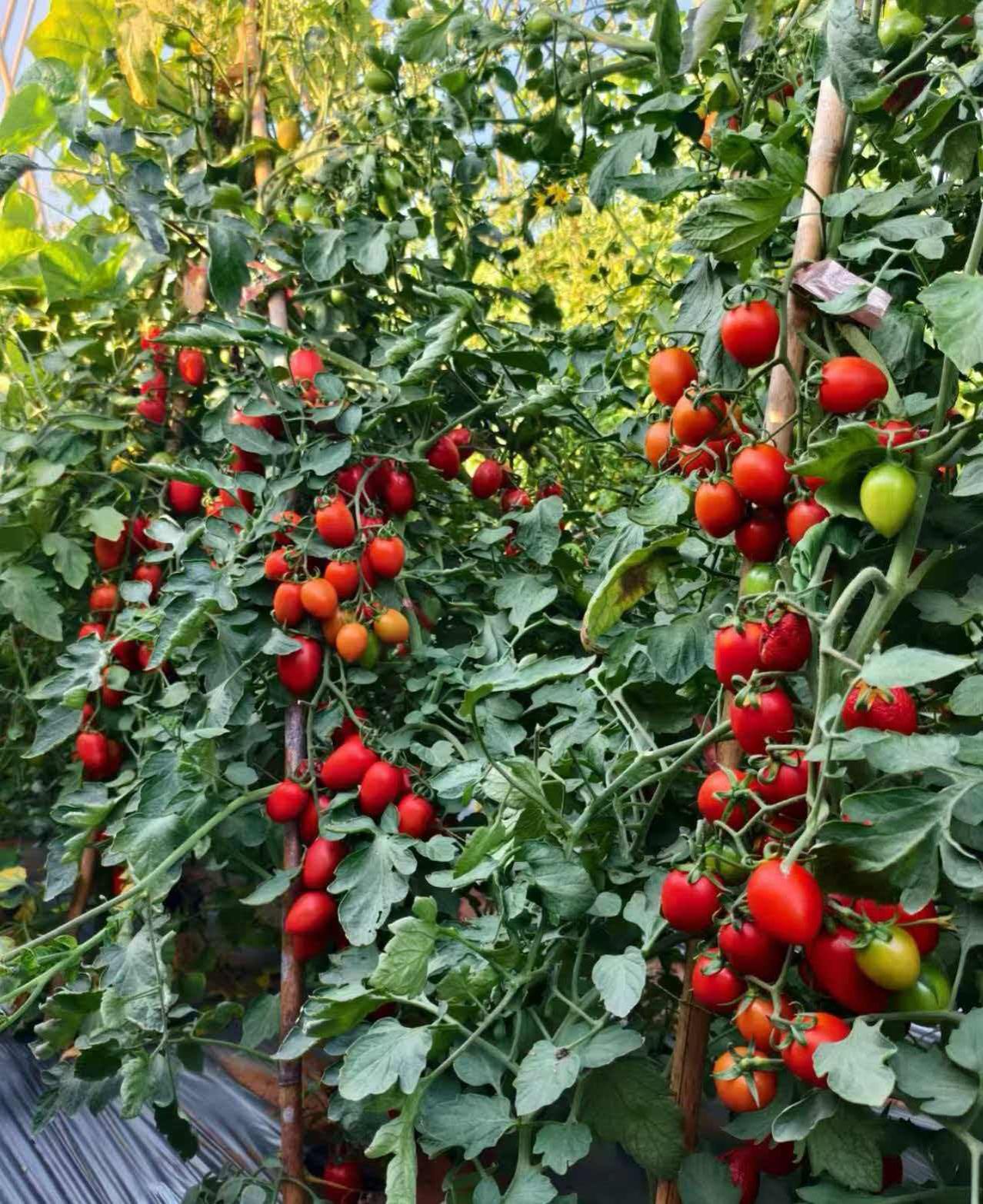 走进龙山村委会,映入眼帘的是一片片红绿交织的番茄田,番茄树间挂满了红的、粉的、绿的果实,饱满圆润、色泽鲜亮,在翠绿枝叶的映衬下格外诱人。农户们穿梭其间,忙着采摘、分拣、运输,脸上洋溢着丰收的喜悦。一颗颗香甜多汁的番茄,不仅丰富了冬日的“菜篮子”,更鼓起了乡亲们的“钱袋子”。