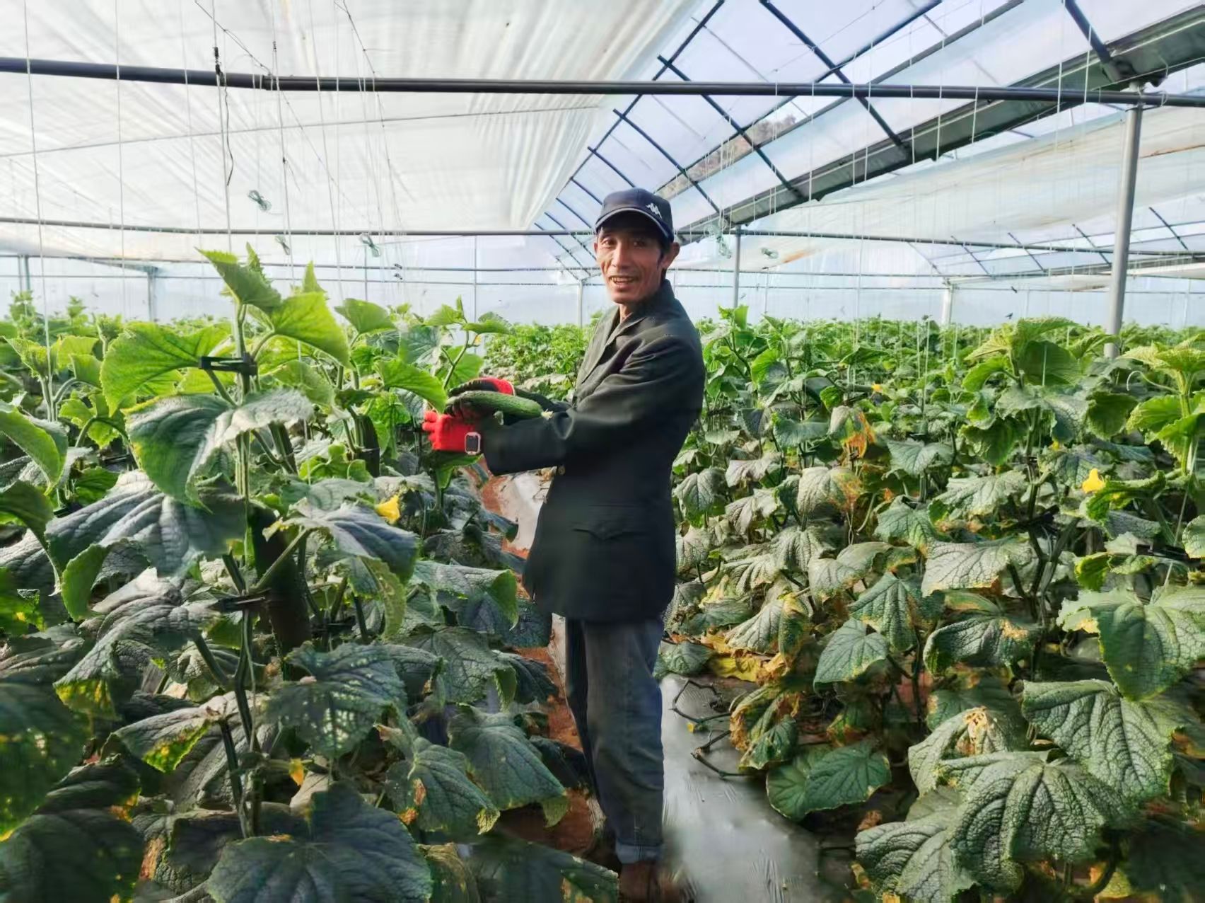 谈及产业发展,尹地村党委书记、村委会主任姚琳满脸笑意,细数着产业带来的民生红利:“黄瓜基地建起来,最实惠的就是咱老百姓!去年11月到今年1月的采收期里,基地日均用工30人左右,村里41户农户实现家门口务工,还吸引了周边村组群众前来就业,大家挣钱顾家两不误。丰产期单日采摘量达32吨,这一季预计采收274吨,收益约136万元。这些新鲜黄瓜通过冷链物流,不仅销往昆明、成都、重庆等周边城市,还走进北上广深等一线城市的商超和农贸市场,销路走俏、供不应求。”她表示,这一年多来,全村从土地流转、标准化种植到产销对接一步步摸索实践,终于把黄瓜基地打造成带农增收的支柱产业,让群众在产业链上挣到了真金白银。