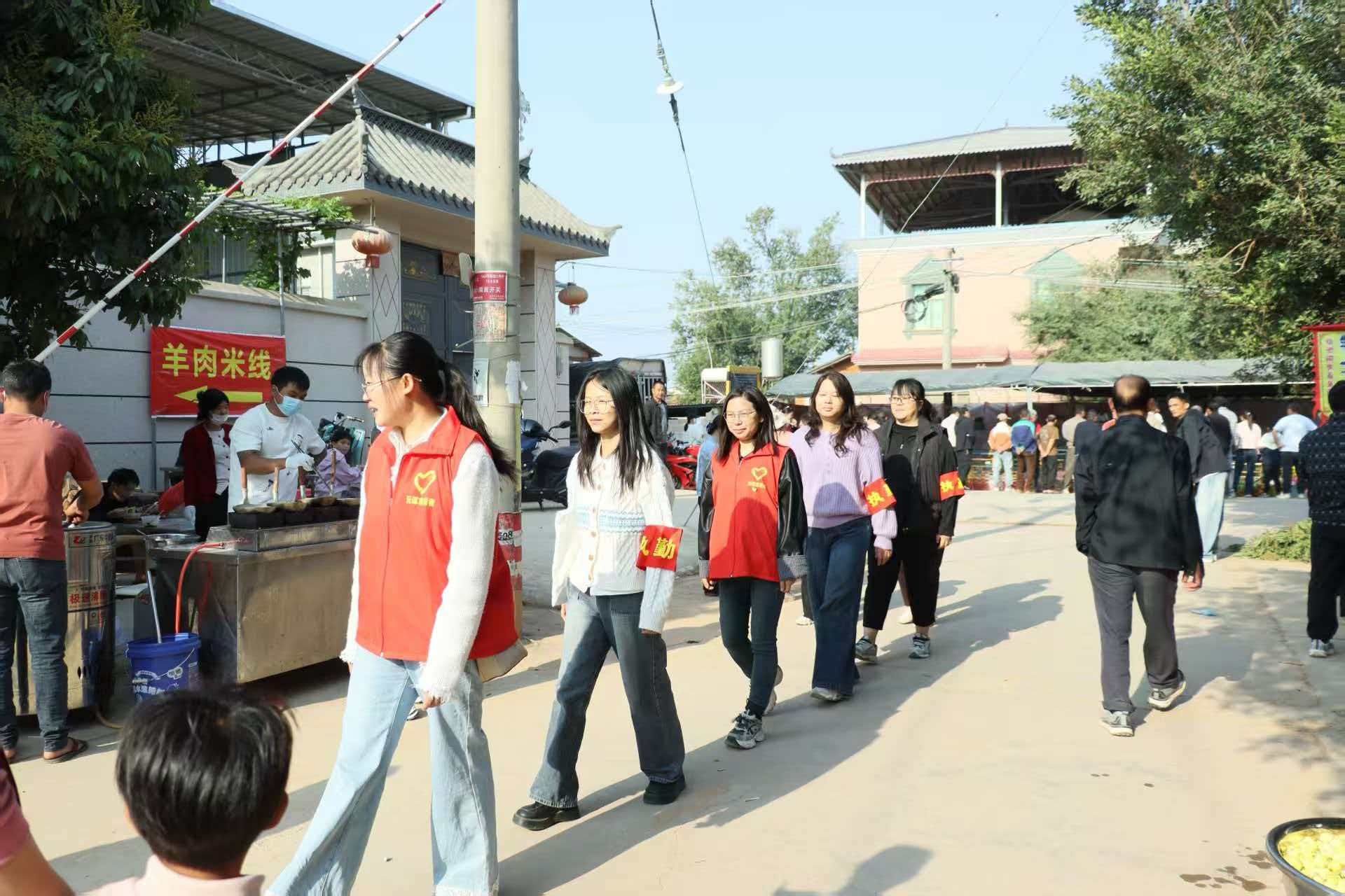 周密筹备,夯实安全根基。庙会人流密集、摊位集中,安全保障是重中之重。镇团委以及志愿者们积极主动参与前期活动谋划筹备,与镇村组工作人员一起开展现场踏勘、风险研判与流程细化,聚焦主要出入口、特产展销区、停车场等关键区域,细化人流疏导、交通管控、应急处置等举措。工作人员一起逐点排查消防设施、用电线路、疏散通道及临时搭建物,做到隐患早发现、早处置,为庙会顺利举办筑牢坚实安全防线。