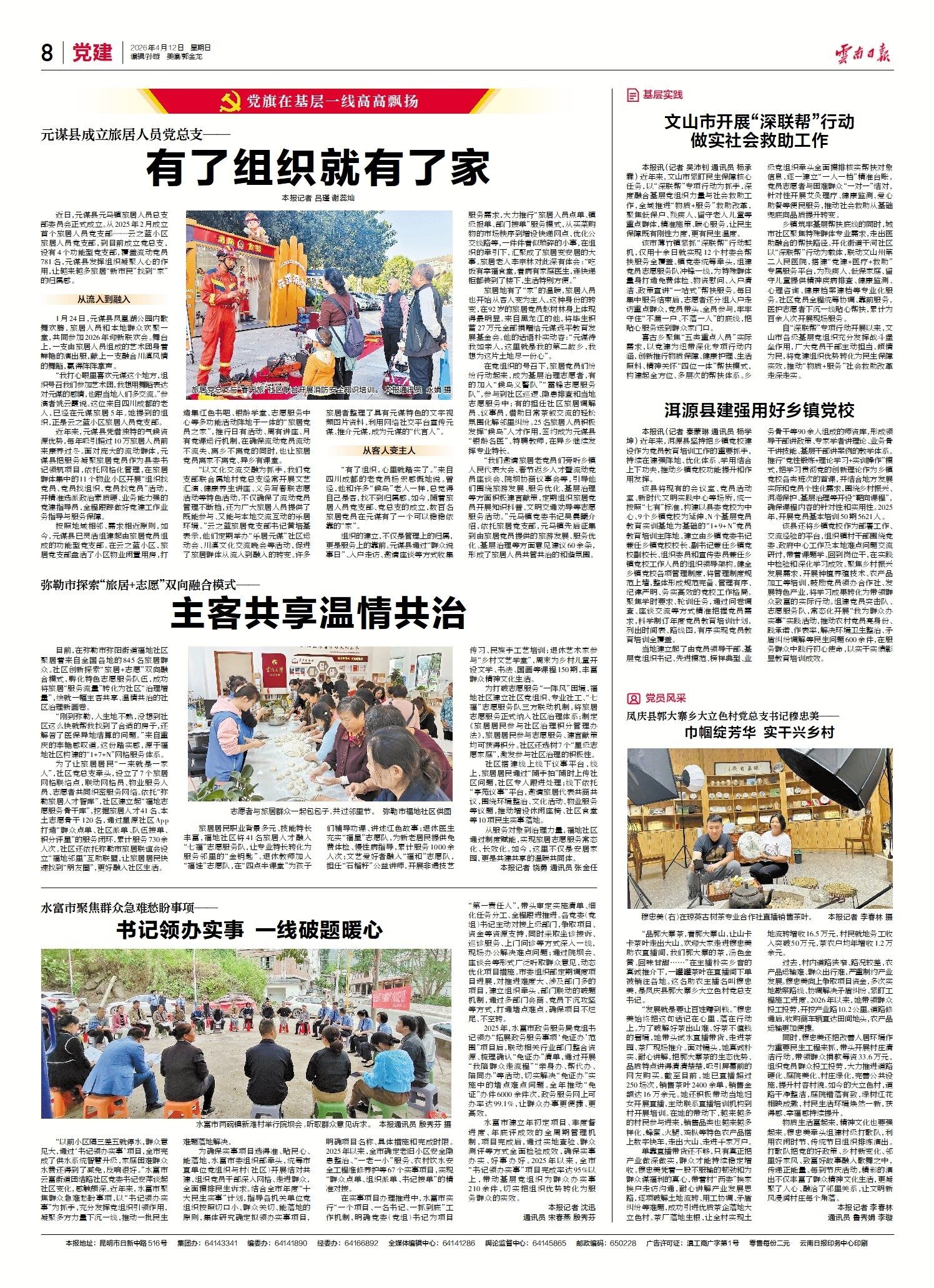 近年来,元谋县凭借独特的气候资源优势,每年吸引超过10万旅居人员前来康养过冬。面对庞大的流动群体,元谋县把服务凝聚旅居党员作为县委书记领航项目,依托网格化管理,在旅居群体集中的11个物业小区开展“组织找党员、党员找组织、党员找党员”活动,并精准选派政治素质硬、业务能力强的党建指导员,全程跟踪做好党建工作业务指导与服务保障。