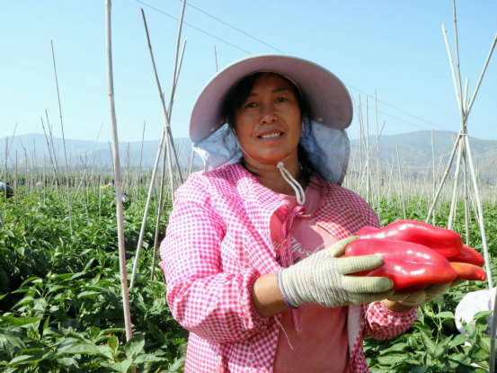 “我们基地今天种植甜椒200亩,一亩的产量在3吨左右,今年价格好,一斤能卖到十几块”基地的管理人员冉勇介绍道,“甜椒经过分拣包装后,直接销往上海、山东、浙江等地,带动当地农产品开拓了外地市场。”