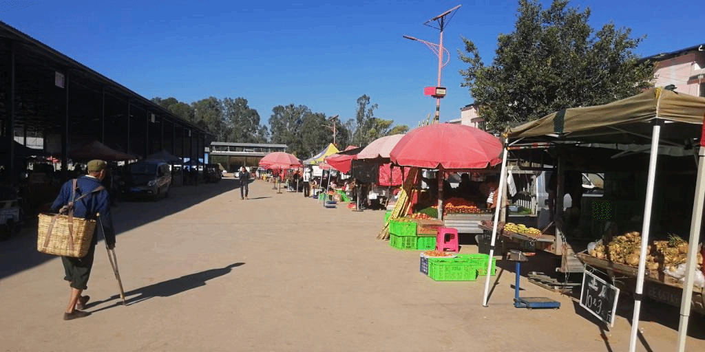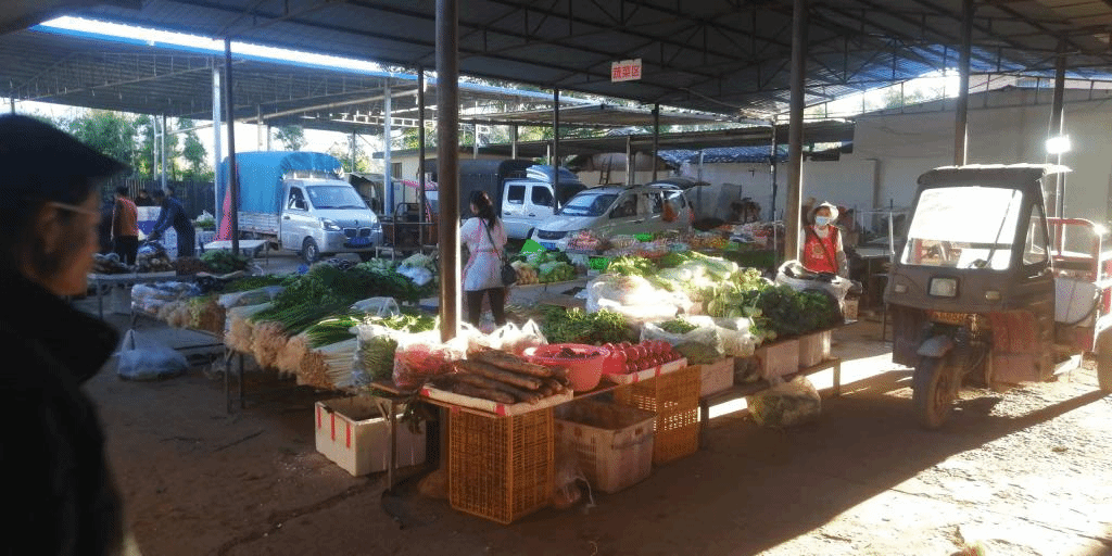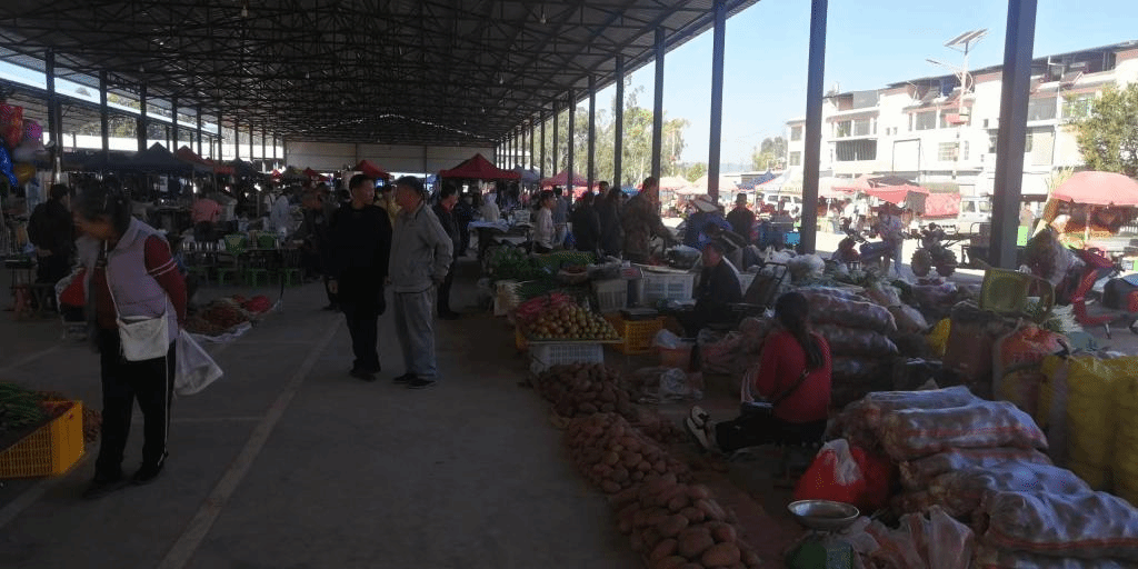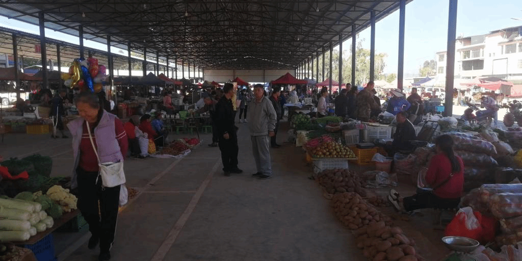 “多年前菜市场又暗又脏,说是‘晴天一身灰,雨天一腿泥’一点不夸张,都不敢穿干净衣服去买菜和农用工具。现在农贸市场多么敞亮。今天外边还下着雨,小小菜市场里边一点积水都没有,也没有异味,还有专门给顾客设置的停车位休,逛小小菜市场跟逛商场一样。”戴发坤说,新建的菜市场环境更好,农用工具、菜、新鲜玉米、新鲜猪肉、大米、米糠、鸡、小猪、各种衣服、水果又新鲜又丰富,逛起来非常舒心。