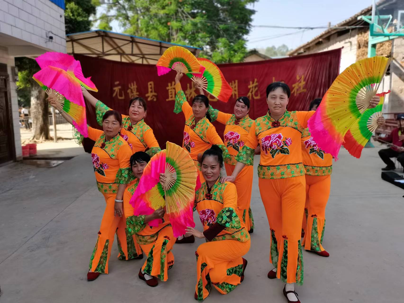 午饭过后,在元谋县黄瓜园镇苴林小村活动广场,男女老少齐聚一堂,元谋县苴林艺渊花灯社正在义务为群众表演花灯歌舞《二十大精神放光芒》。