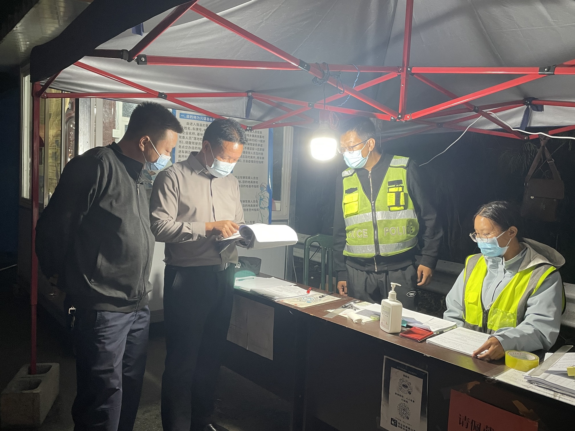 “师傅,您好!您是从哪里来的?”“您好,请靠边停车,出示一下行程码、健康码,登记一下信息。”在黄瓜园镇土林疫情防控值守点,镇政府工作人员、派出所民警正逐一对往返车辆进行信息登记、体温检测、查验健康码和行程码。