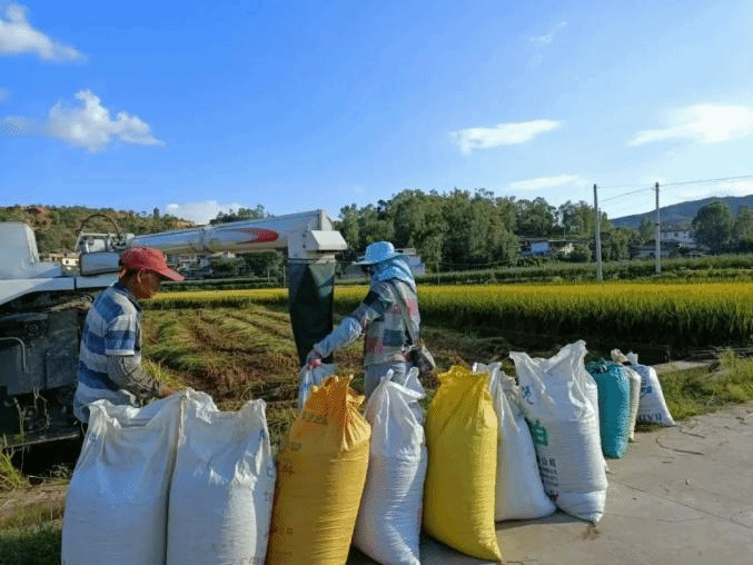 连日来,元谋县新华乡班庄村高标准农田里机器轰鸣,人头攒动,运粮车辆来来往往,金灿灿的稻谷垂着沉甸甸的稻穗等待收割,一幅繁忙的丰收图景。近年来,新华乡全力以赴抓好粮食生产,多措并举稳住粮食安全“压舱石”作用,各类粮食连年丰产丰收。