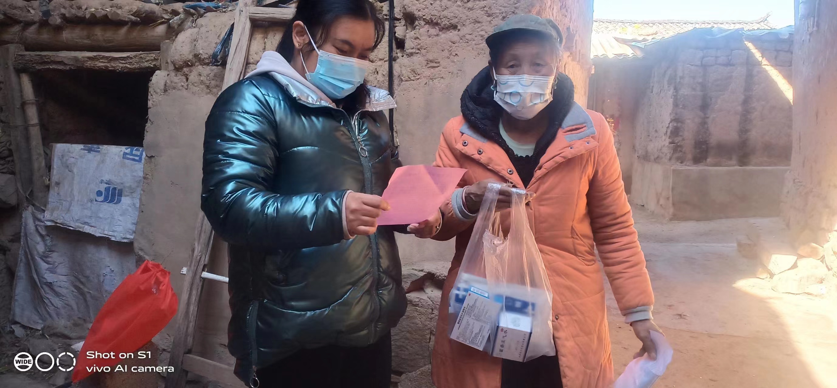 “大爹,里面有4种药,这个是镇咳祛痰的,咳嗽有痰时候吃,一天吃3次,一次1片就行了,用药说明袋子里也有,如果记不得就直接打电话给村干部,我们都会教你怎么吃......”金雷村委会工作人员普金丽一边发放药品,一边向群众耐心地讲解药品用法和注意事项,并嘱咐大家对症用药,必要时就医。前来领取药品的老人虽佩戴着口罩,但脸上的激动和欣喜却难以掩藏。