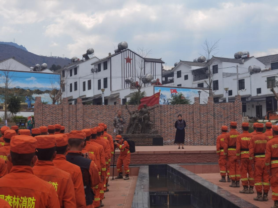 2023年2月23日,在元谋县江边乡顺利举行“云南省金沙江流域高温干热河谷森林草原火灾救援处置联动实战演练”之际,昆明市森林消防支队和昆明航空救援支队特勤大队到江边乡诗歌小镇红色文化主体广场开展爱国主义教育活动。