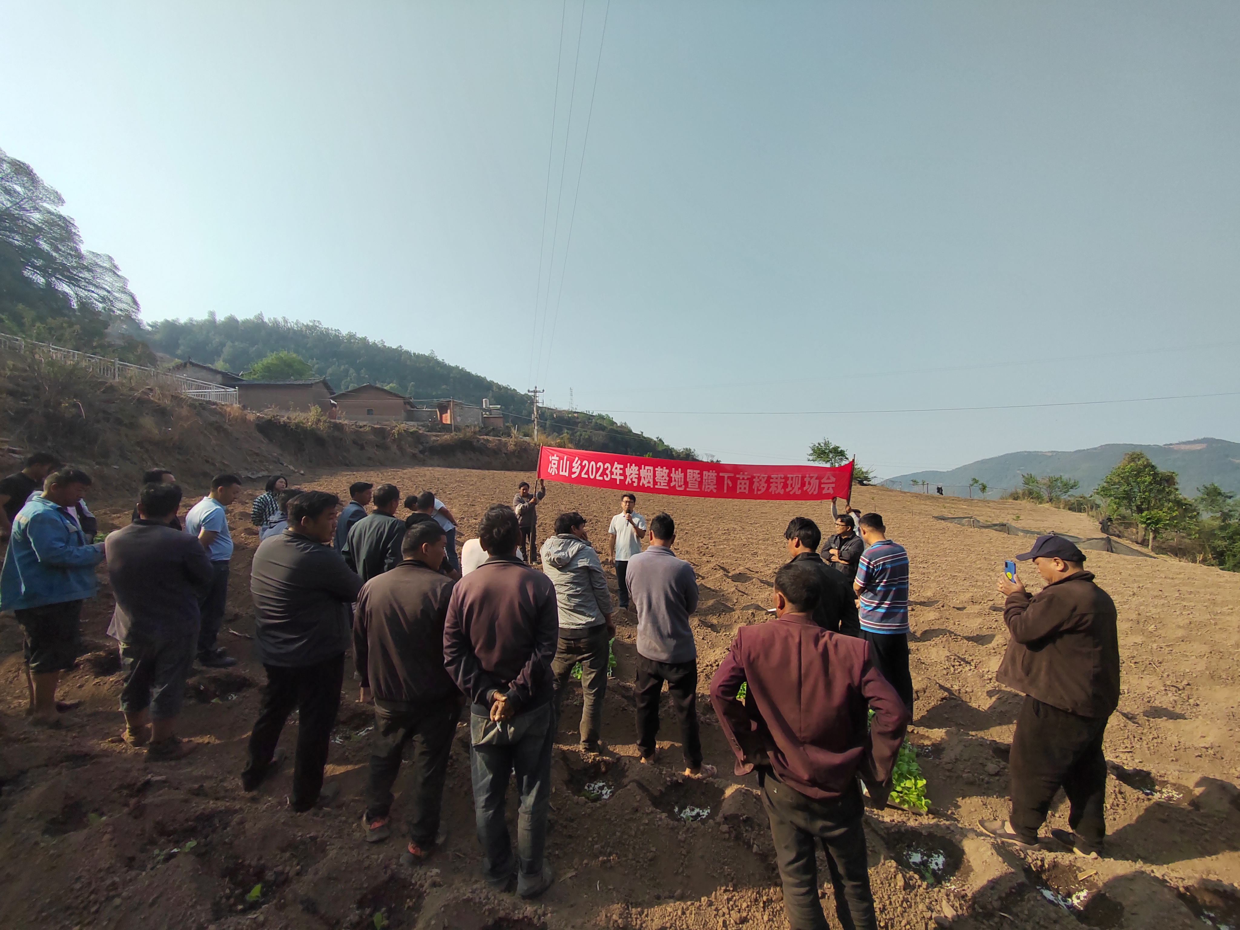 4月20日,凉山乡组织乡村组干部、烟站全体干部职工以及烤烟种植户共60余人,在那迪村委会樟木树村开展烤烟整地暨膜下苗移栽现场会,确保我乡烤烟在最佳时间完成移栽。