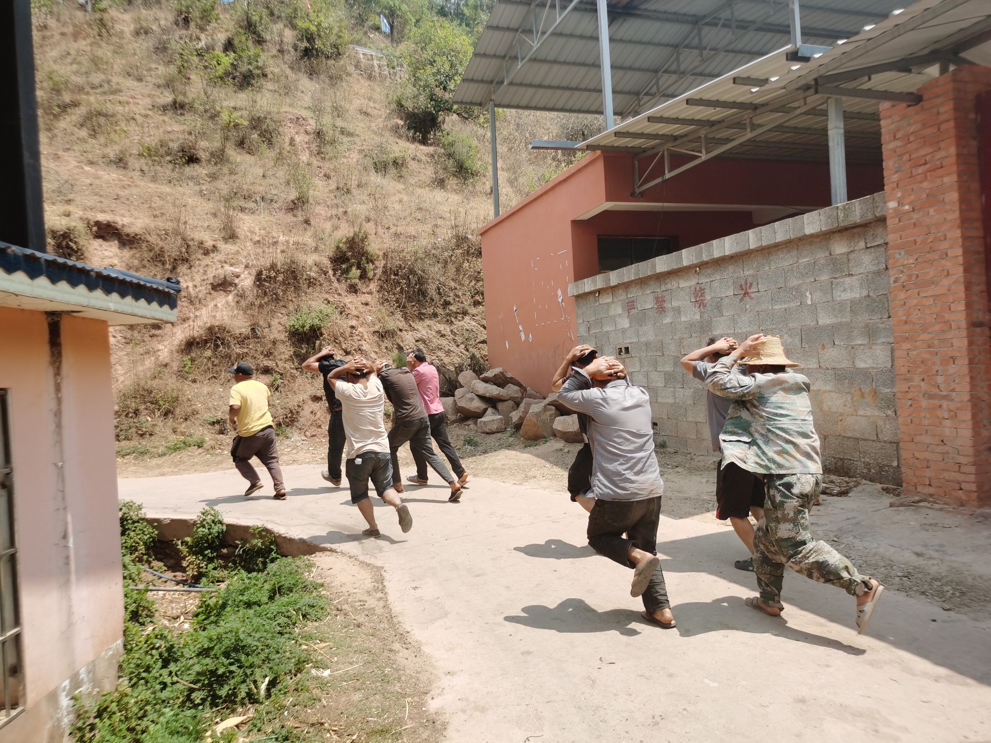 乡村组干部按照挂包片区,分别到全乡35个村小组模拟进行自然灾害应急演练,积极组织群众参与。随着警报声地响起,群众迅速做出反应,低头弯腰、双手护头蹲在安全位置就地避险;疏散警报响起后,群众立刻从各自家中跑出,并按照事先选定的避险路线有条不紊地撤离到安全地带,整个演练过程有序且高效。