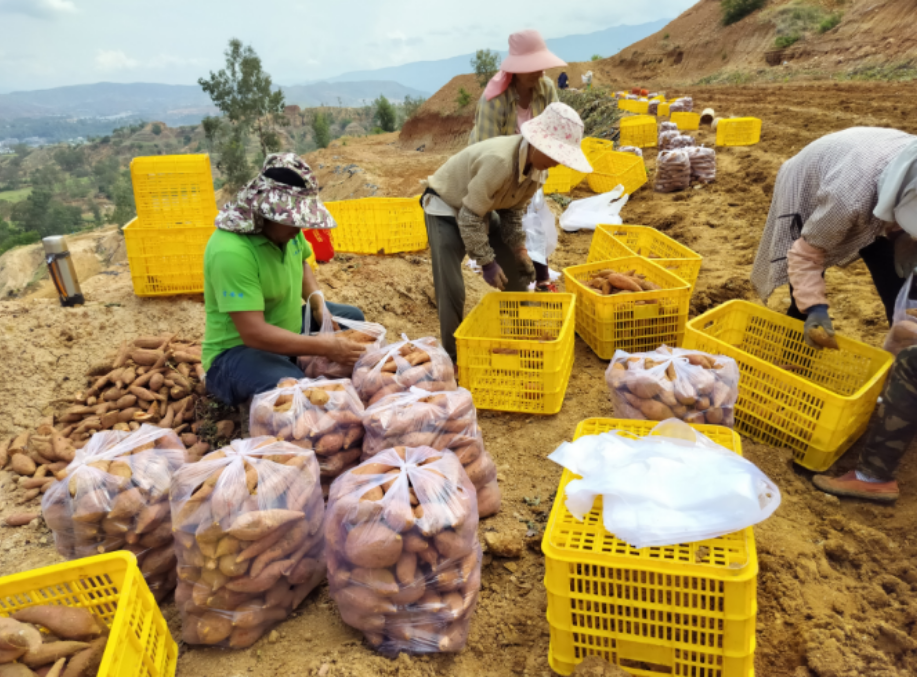 秋高气爽,瓜果飘香。在元谋县物茂乡金沙坪三十多亩有机红薯种植基地里,一派忙碌景象,今年的红薯又迎来了大丰收。