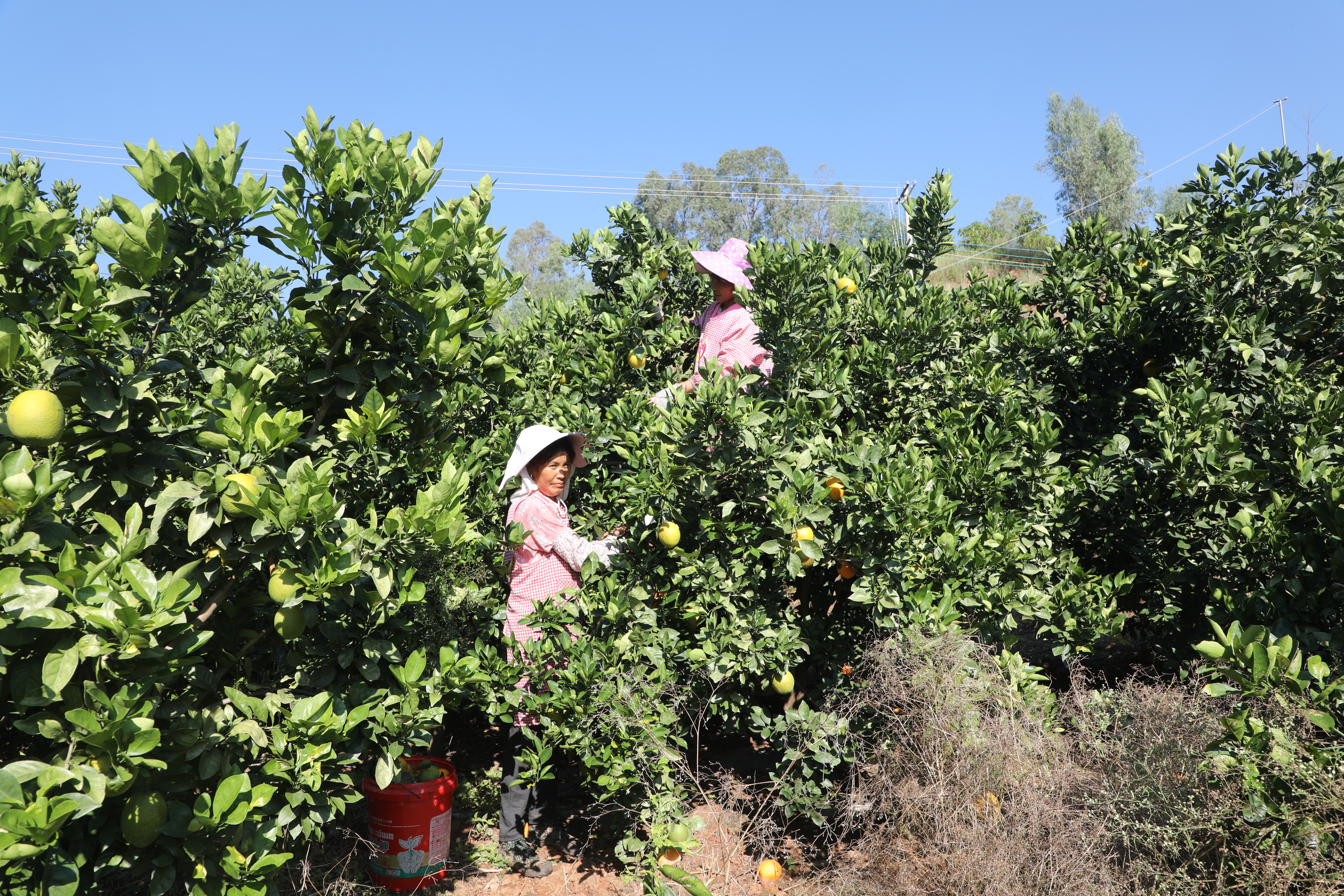 果园里,工人们穿梭劳作,采摘、分拣、装箱、上秤、装车,准备发往全国各地。不少游客循着果香而来,兴致勃勃地入园采摘和品尝脐橙,不时拍照留念,体验着田园自助采摘的乐趣。基地负责人管卫兵介绍,今年脐橙迎来了大丰收,产量可达200吨,且品质优良、供不应求。预计产值可达60万元。今年已经接到了不少订单,主要销往浙江、福建、四川等地。