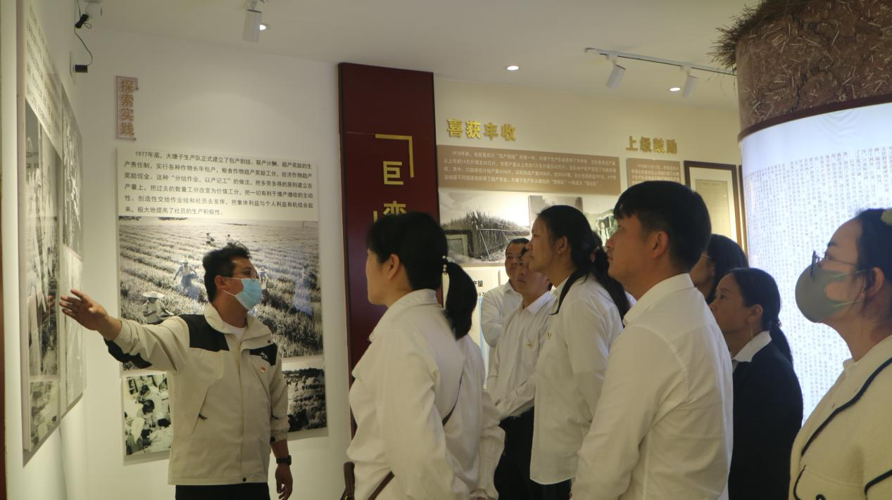 追寻先人改革足迹,汲取敢为人先首创精神。最后一站,以参观大塘子包产到组纪念馆结束。在元马镇星火社区党委副书记的介绍下,乡机关党员干部参观了大塘子村改革开放前后的历史图片、实物和6000字的一封改革信,一组组改革前后的生产总值数据记录着历史,从大塘子村包产到组的革新,到各级的肯定以及安徽凤阳小岗村实行包产到户的案例,都映射出元谋人实事求是、与时俱进、敢于追求真理、勇于奋斗、敢为人先的改革精神。包产到组的成功,让参观的党员干部深刻地感受到大塘子村人民敢为人先的精神和我们党所遵循的“解放思想,实事求是的思想路线。”激励着全乡党员干部解放思想,实事求是,为推进老城高质量发展而勇于探索创新。