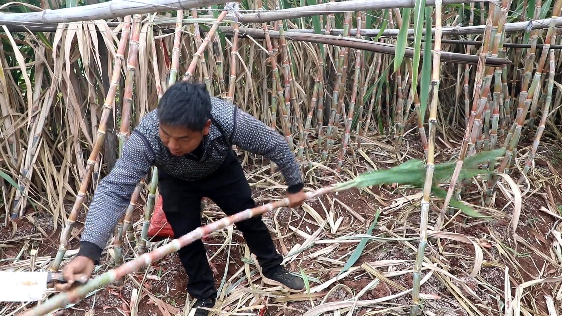 种植户文位齐手拿砍刀,熟练地将甘蔗砍倒,再把头尾稍作修剪,一棵甘蔗就处理干净。文位齐说:“我家这一亩甘蔗能产五吨,我们凹鲊的甘蔗又甜又脆,拉到市场上很好卖,能卖四块多一公斤。”