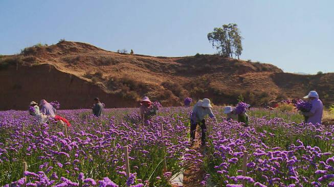 老城乡朱家村鲜花种植基地负责人李如超告诉记者:“鲜花产量还可以,每一亩种得好的话,产量能达到3吨到3吨半左右,我们的销售渠道主要是用电商、拼多多、淘宝这个系列在销售,就是分把扎出,这两天的价格赶上三八节还可以,种植面积70亩左右,这两天的工人每天大概15个左右。”