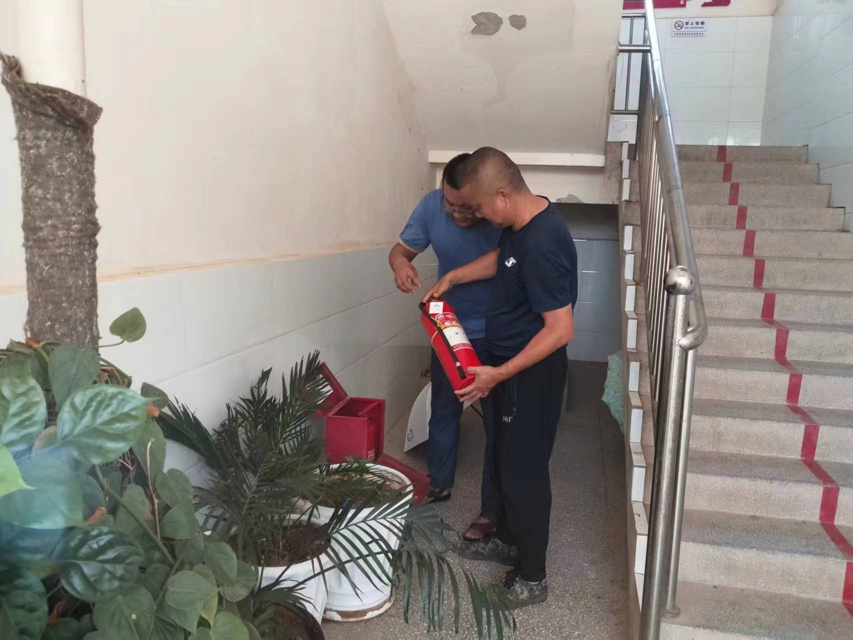 检查组成员深入学校各个重点区域,查看消防设施是否完备,消火栓是否能正常使用,灭火器的保质日期及检查记录;查看学生宿舍,确保无电线老化、破损现象,确保插座、开关等使用安全;查看活动器械、户外大型玩具器械等是否有断裂,螺丝有无松动;查看校园食品卫生,了解餐具消毒情况、后厨及原材料库房等卫生情况。