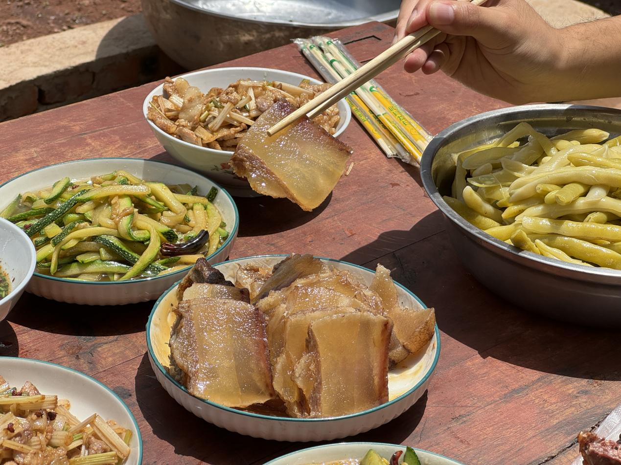 走进元谋县凉山乡把世者村委会白石岩村,村民何金富和妻子付兰秀正在制作腊肉。制作现场只见猪肉、细盐,以及些许枯柴。夫妻两人有条不紊,有说有笑,互相配合,动作娴熟,场面温馨。
