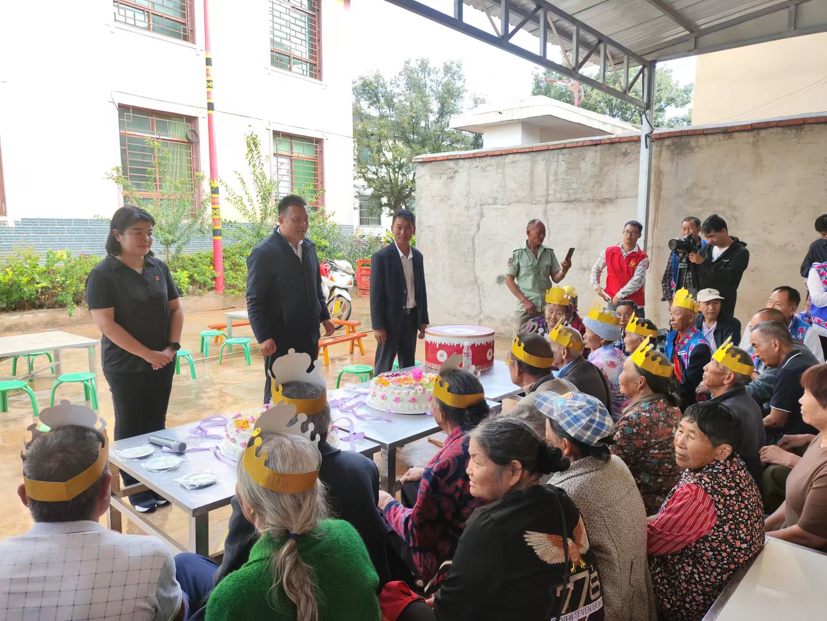 金秋十月爽,九九话重阳。在新华乡新平村委会,一场暖意融融的重阳节晚会正在拉开序幕,100余位老人与志愿者们欢聚一堂,赏歌舞、品美食、举办集体生日party、合唱生日歌,喜迎重阳佳节。