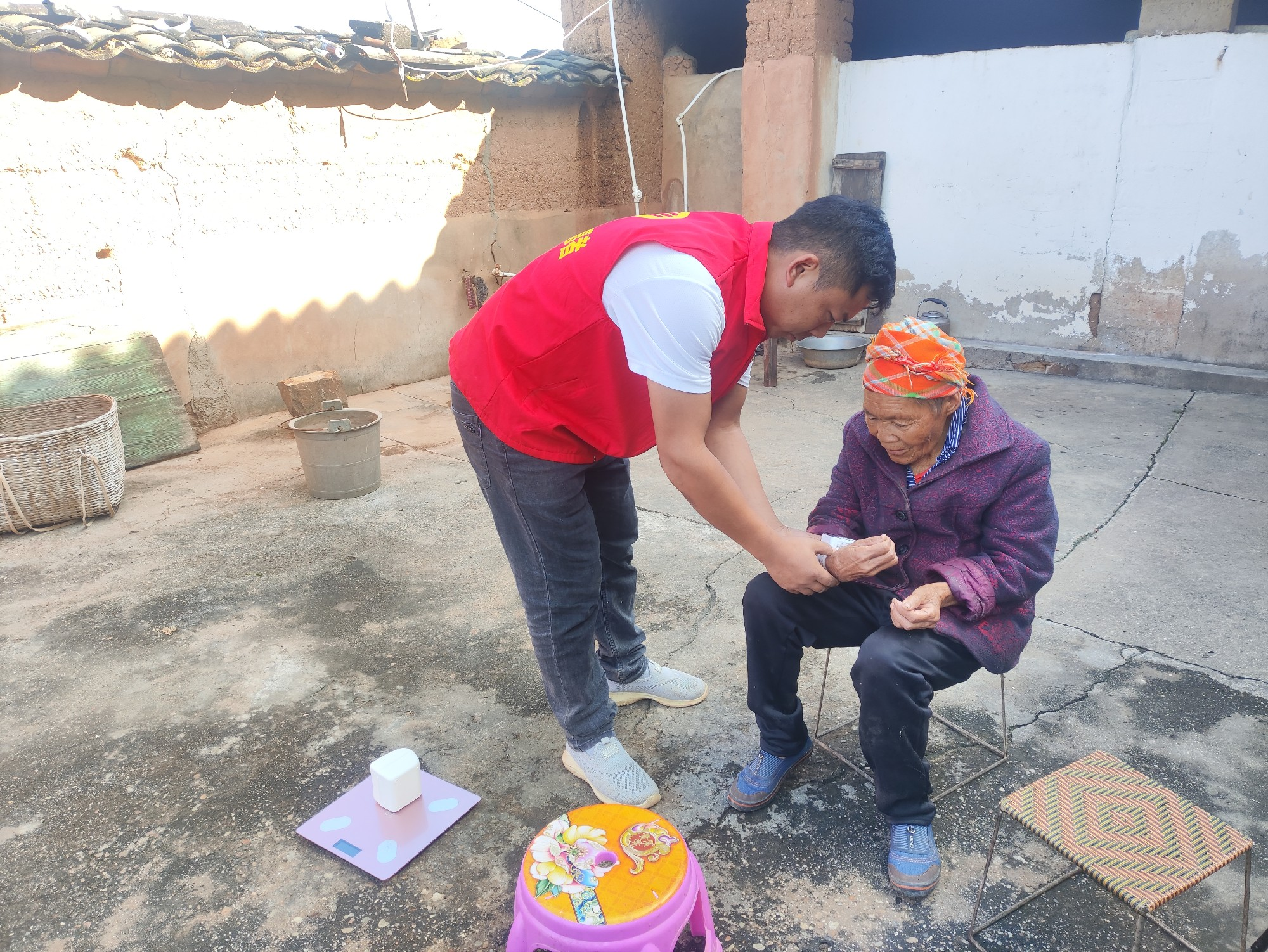 在新华乡华丰村委会,一支由民政、妇联、团委、卫生院、村“三职”干部联合组成的“爱心敲门”志愿服务队活跃在村头巷尾,深入到老人家中开展心理陪伴、理发、卫生清扫、量血压、健康知识讲解、普及慢性疾病的预防以及养生护理知识等服务。每到一户老人家里,志愿者们细心询问老人生活状况,认真收集老人们的“心愿单”,对力所能及的困难问题“现场办”“及时办”,将暖民心、聚人心的志愿服务“送到家”。
