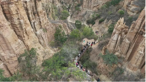 “我从四川成都过来的,我是第一次来元谋也是第一次来土林,来到土林感觉景色特别的壮观,自然风景特别的好,也想让自己的小孩体验一下自然的景观,也拍了各种各样的照片,非常的惊奇,非常震撼,这种大自然的景观非常出片。”游客景女士说。大年初二元谋县气温回升,在蓝天白云的衬托下,土林景区显得更加恢弘壮阔,前来观光旅游的游客络绎不绝,大家都在工作人员的安排下井然有序的入园游览,土林诡异迷离、鬼斧神工、姿态万千的地质地貌,原始神秘、粗犷荒蛮的风韵,深深地吸引着游客,大家对土林景区的美好景色赞不绝口。