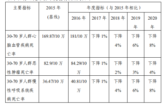 (一)降低30—70岁人群糖尿病、心脑血管疾病死亡率