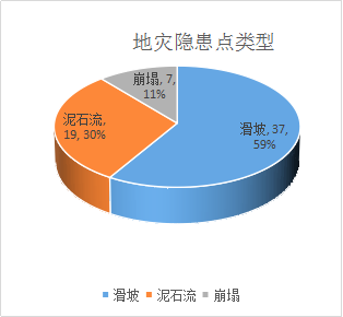 根据排查、核查成果以及各乡镇上报情况,2023年列入监测范围的地质灾害隐患点共63个,同比增加3%,其中:按地质灾害类型划分:滑坡37个,崩塌7个,泥石流19个。按乡镇划分:元马镇6个点,黄瓜园镇10个点,羊街镇17个点,老城乡8个点,新华乡6个点,平田乡1个点,物茂乡6个点,凉山乡5个点,江边乡2个点,姜驿乡2个点。地质灾害共威胁4194户、15639人、10.2632亿元生命财产的安全,落实地质灾害隐患点监测人员144人。