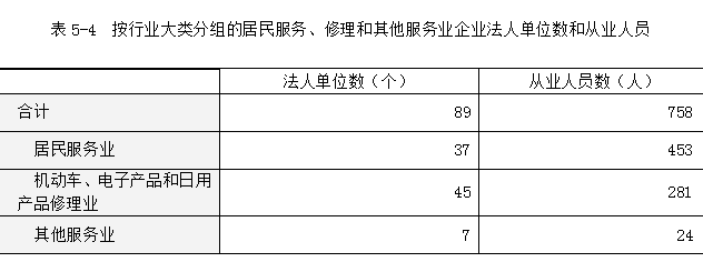 2023年末,全县共有居民服务、修理和其他服务业法人单位89个,从业人员758人,分别比2018年末增长15.6%和51.3%(详见表5-4)。
