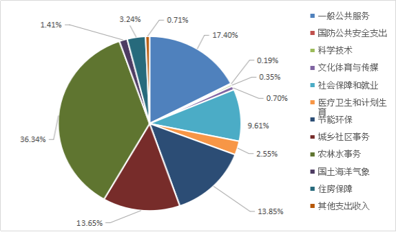 2017年支出34,777,624.69元,基本支出11,456,484.90元,占支出的32.94%,项目支出23,321,139.79元,占支出的67.06%。其中:一般公共服务支出7,204,650.11元,占支出的20.72%;科学技术支出244,726.00元,占支出的0.7%;文化体育与传媒支出296,138.00元,占支出的0.85%;社会保障和就业支出4,176,821.47元,占支出的12.01%;医疗卫生与计划生育支出1,082,865.35元,占支出的3.11%;节能环保支出5,257,159.50元,占支出的15.12%;城乡社区支出2,060,200.00元,占支出的5.92%;农林水支出12,116,604.26元,占支出的34.84%;国土海洋气象等支出255,000.00元,占支出的0.73%;住房保障支出1,767,740.00元,占支出的5.08%;其他支出240,000.00元,占支出的0.69%。
