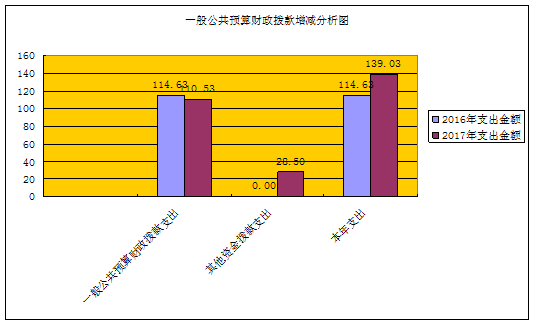 元谋县妇联2017年度一般公共预算财政拨款支出110.53万元,占本年支出合计的79.50%。与上年对比,减少支出4.10万元,下降3.58%,主要原因:剔除政策性增资因素外,当年财政一般公共预算财政拨款支出主要用来维持单位机构的基本运转,单位为完成特定任务和事业发展目标所发生的支出改用其他资金拨款来安排,从而造成一般公共预算财政拨款支出减少。