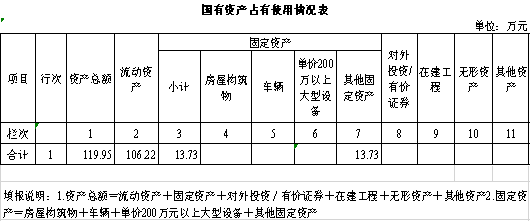 截至2020年12月31日,中国共产党元谋县委员会政法委员会资产总额119.95元,其中,流动资产106.22元,固定资产13.73元,对外投资及有价证券0万元,在建工程0元,无形资产0元,其他资产0元(具体内容详见附表)。与上年相比,本年资产总额减少15.41万元,其中固定资产减少4.43万元。处置房屋建筑物0平方米,账面原值0万元;处置车辆0辆,账面原值0万元;报废报损资产0项,账面原值0万元,实现资产处置收入0万元;出租房屋0平方米,账面原值0万元,实现资产使用收入0万元。