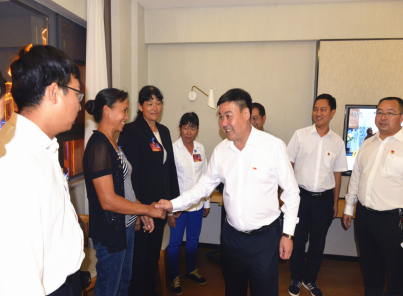 5月25日晚,县四套班子成员在县委书记李勇的带领下,到各代表团驻地泷湖大酒店看望参加县十七届人大五次会议的县人大代表。