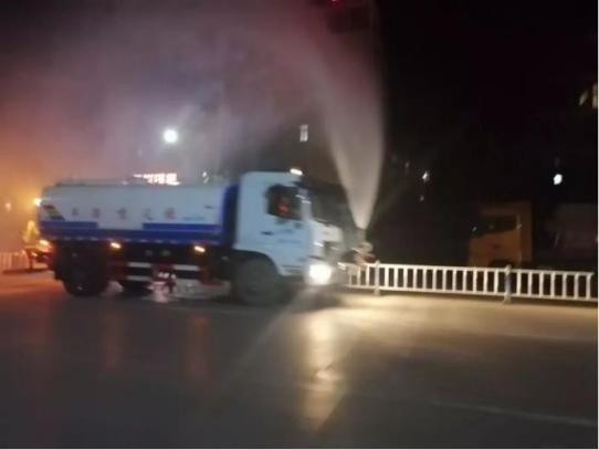 8月25晚9时,元谋县城大街小巷响起了洒水车的音乐声,打破了安静的夜晚。雾炮车 “喷云吐雾”,对城区主次干道、公园、广场等公共区域进行循环喷洒,无死角、无盲区“进行全城大消毒”。