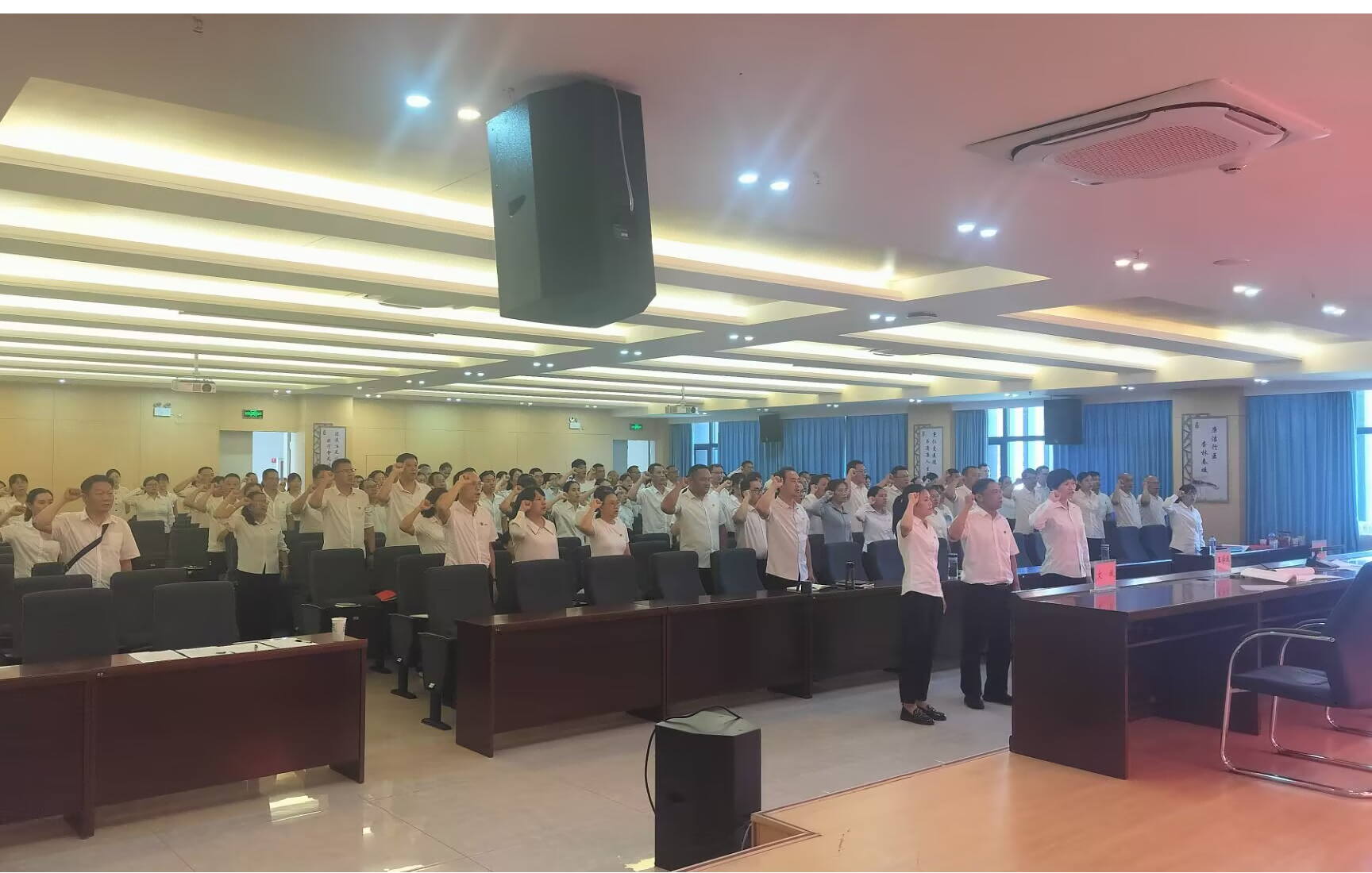 在新发展党员入党宣誓活动中,新党员们在庄严的党旗下高举右拳,郑重宣誓。洪亮的誓言在会场回荡,彰显着他们对党的忠诚与担当。老党员们也一同见证,为新党员们送上殷切期望,勉励他们牢记初心使命,立足本职工作,以实际行动践行入党誓词。
